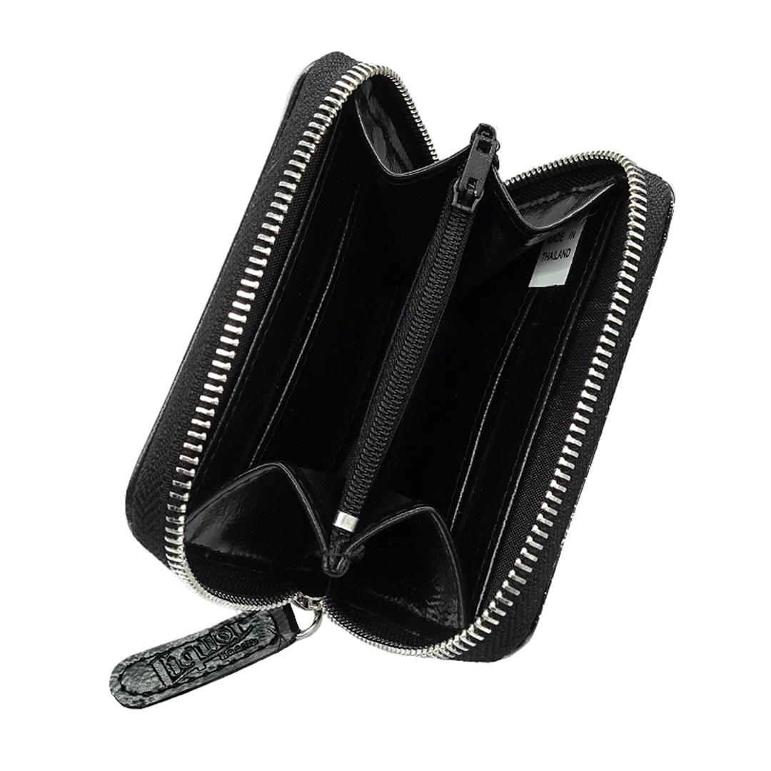 The Vega Wallet from Liquorbrand is retro goodness all wrapped up in a pocket sized package! Made of a high quality leopard print faux leather with their signature chevron silver badge at the front. The interior has multiple card slots while the wallet stays shut thanks to its zip closure. Not to mention, the smaller size makes it a great option for smaller purses!
