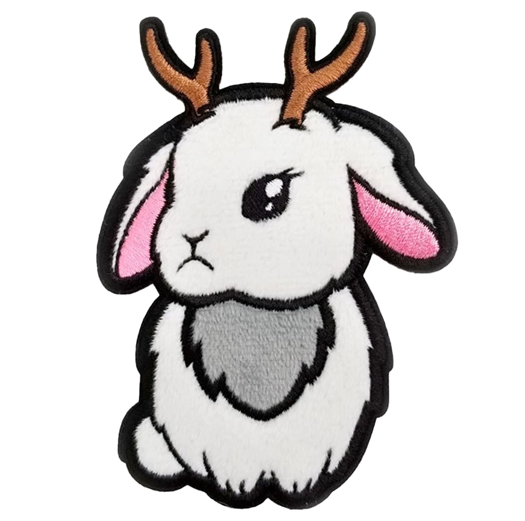 Here’s some cuteness overload with a grumpy little jackalope. Fuzzy patch with embroidered detail and adhesive backing.