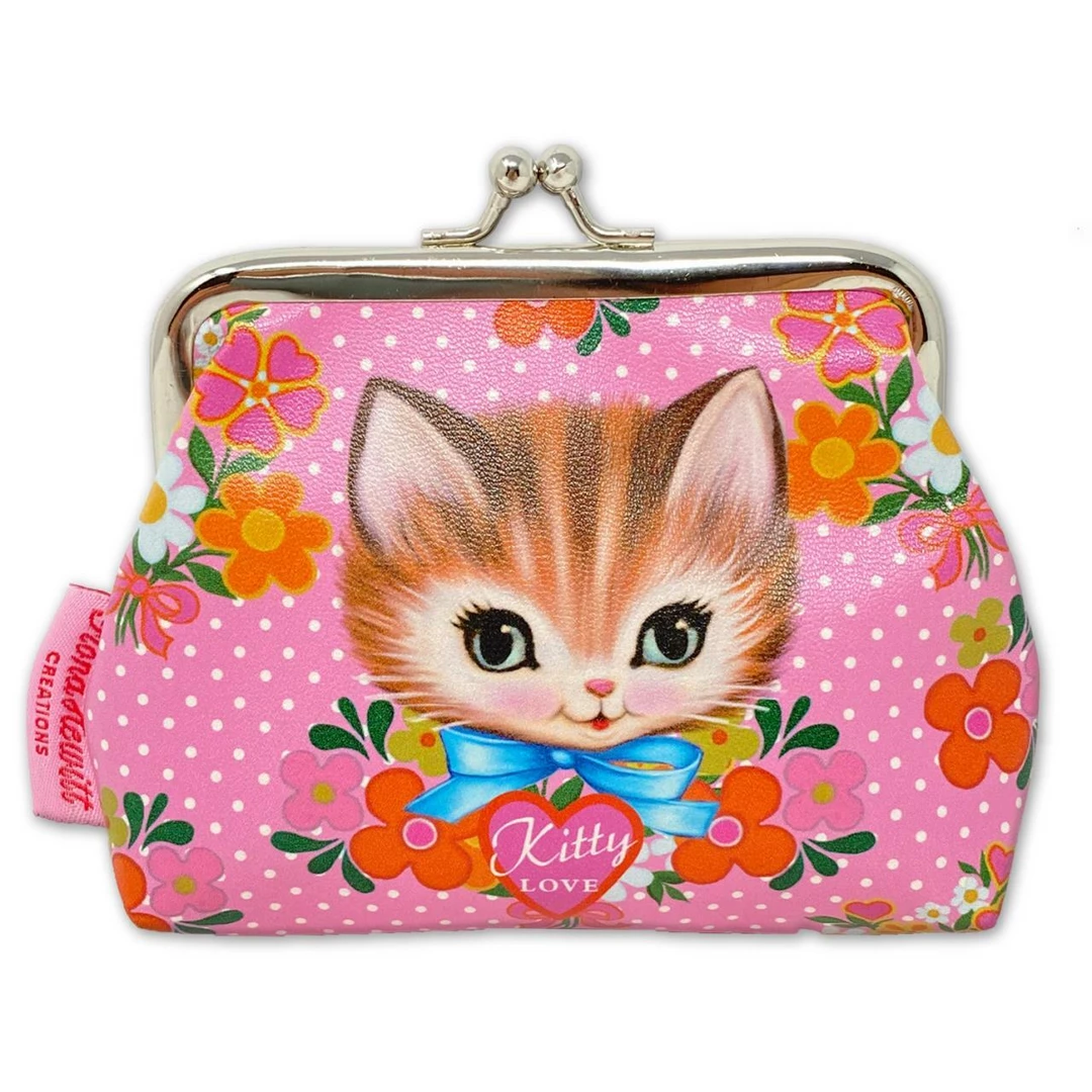 If you are a proud member of the ‘Sweetness Society’, raise your paw high, and remember anyone can apply! The flowers featured in orange, pink & white, well they make this kitty look just right! Ocean blue is on one side and lively pink on the next, making this polka dot pattern clearly the best. You’ll perk right up with this fun-sized vintage-inspired coin purse, featuring artwork by Fiona Hewitt. It’s made from 100% vegan, leather-like material. Lined with a joyful, fuchsia pink satin and closes shut with a sturdy kiss clasp ball closure.