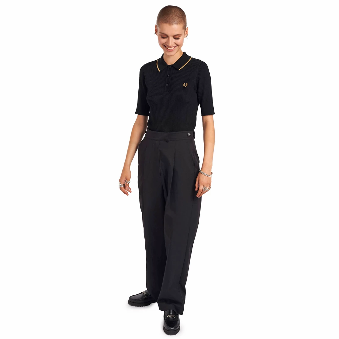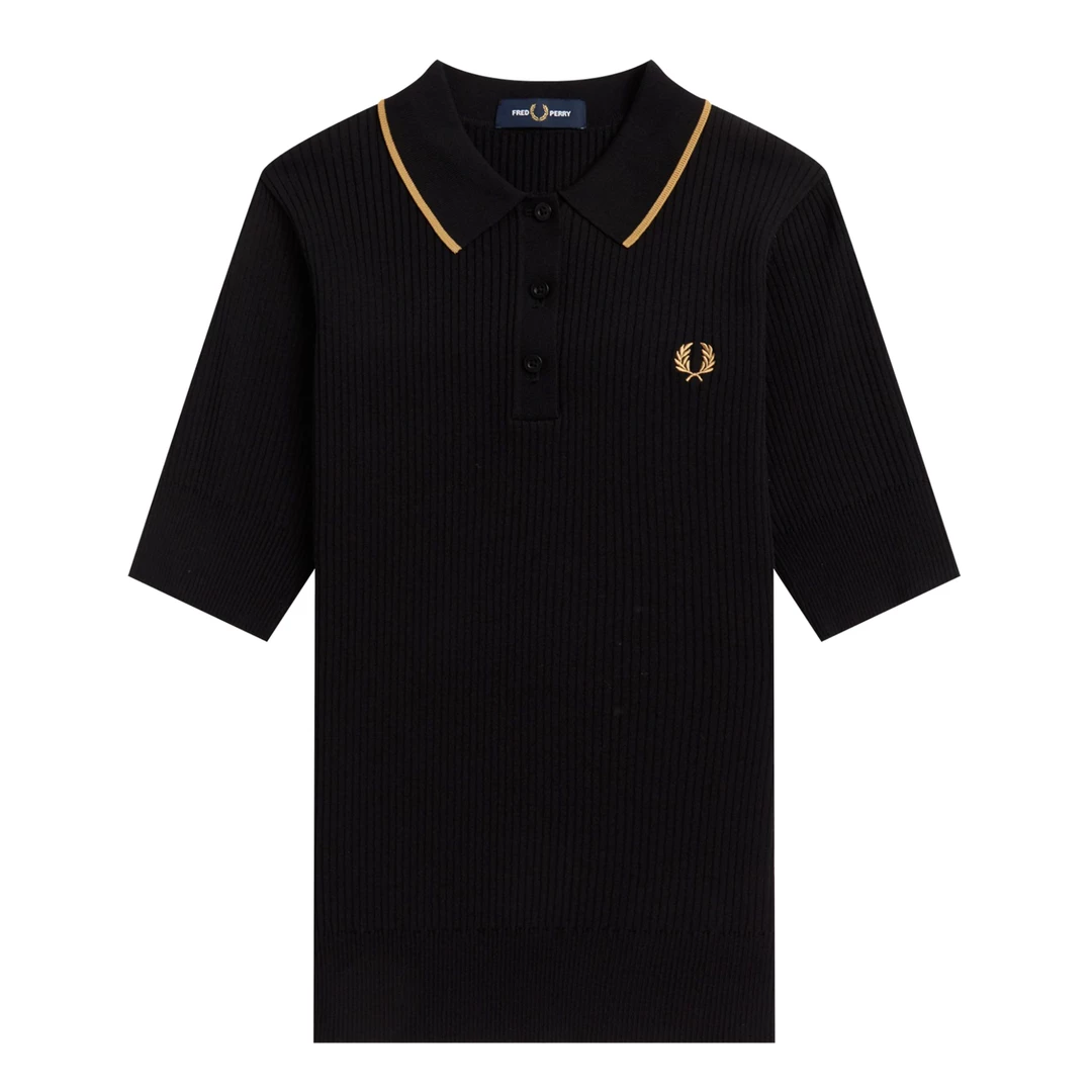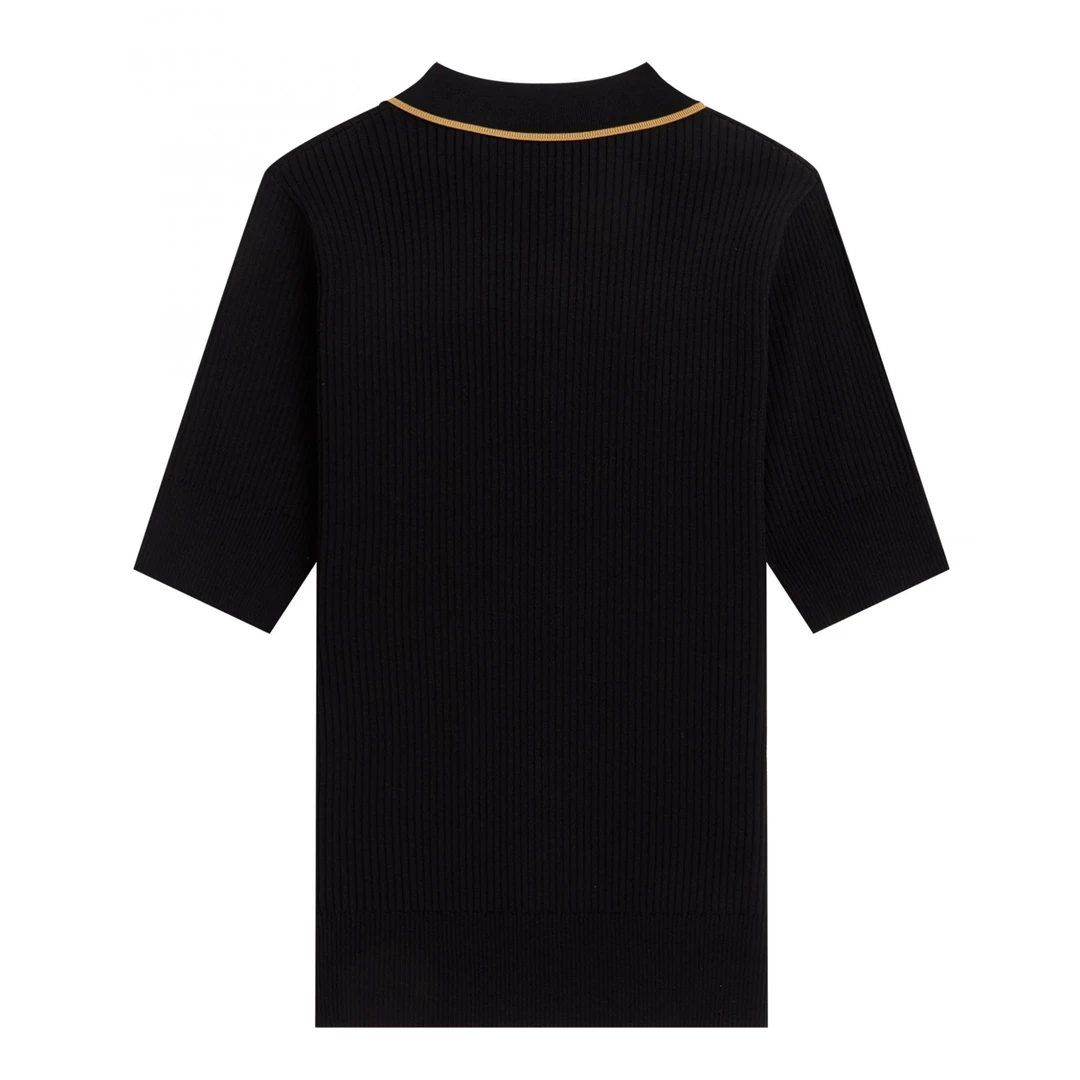 SKU: fred-perry-7321816662175 Categories: Apparel, Knit Tops, Polos, Tops Tags: Black, Collar, Knit, Metallic gold, Mod, Polo shirt, Ribbed knitted, Womens