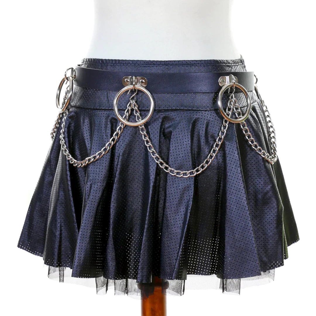 Create a statement with this killer Ring and Chain Bondage Belt. Crafted from high quality leather, it features statement large silver rings and chains all the way around. Pairs great with dresses, skirts, and shorts!