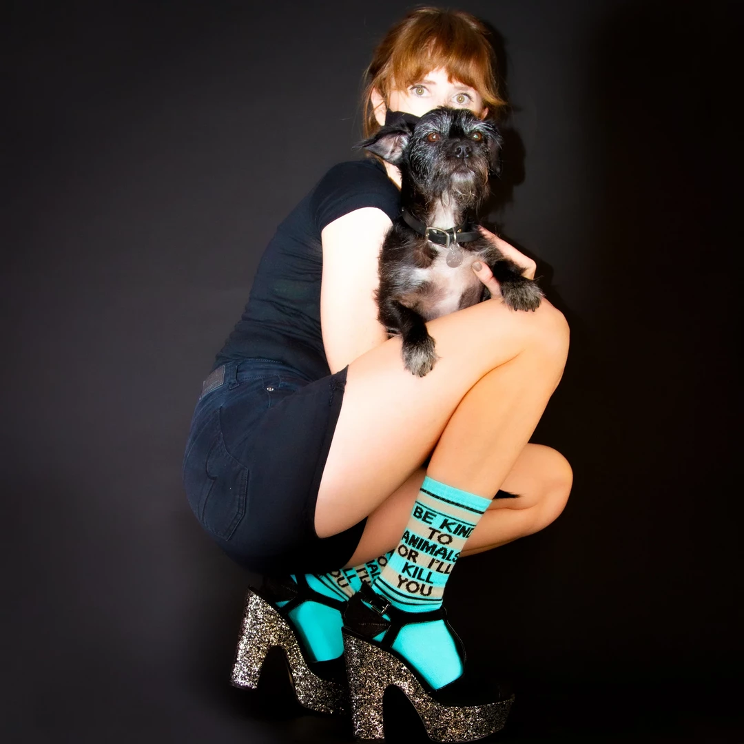 Be kind to animals or else. No mincing words when you wear these cozy gym socks from Gumball Poodle in a bold and bright blue.