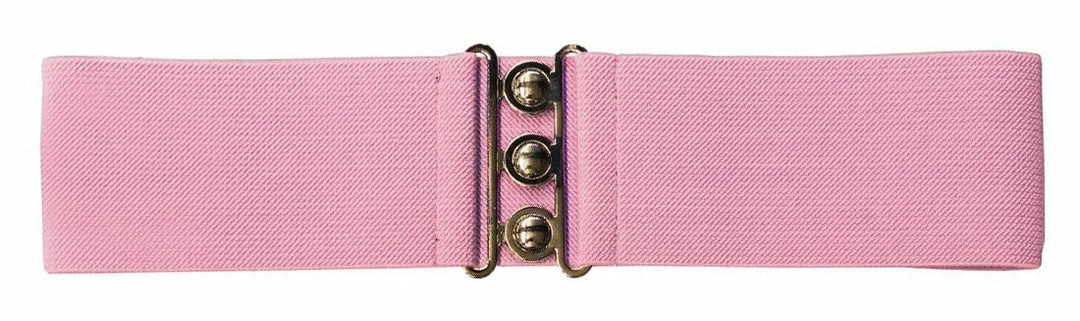 Create instant curves with this retro belt in pink from Hell Bunny! This wide elastic belt fastens closed in the front with a silver colored clasp.