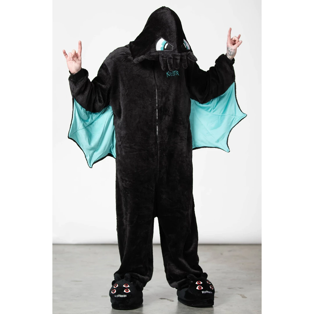 Embrace your inner monster with the cozy Cthulhu Onesie from Killstar. With super soft, plush fabric with a full length zipper for ease of use finished with adorable wings, a Cthulhu hood and tentacle mouth hood. The perfect piece to get snuggly in the crypt. Always unisex, so itโs for everyone – wear oversized for a more relaxed fit.