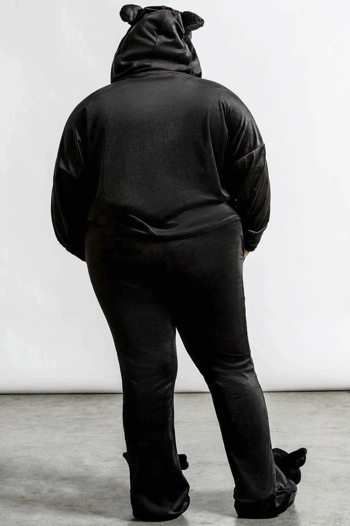 Curl up with your pack under the full moon in the Lone Wolf Lounge Set from Killstar! Made from a super soft fabric, the set includes a cropped long sleeve top with sherpa-lined hood, wolf ears and tassels, and matching pants. The puuurfect lounge set for a rainy day on the couch!