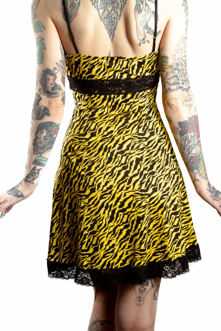 New ๐ Neon Dreams SOURPUSS PIZZAZZ SLIP ๐ DRESS YELLOW ZEBRA ๐