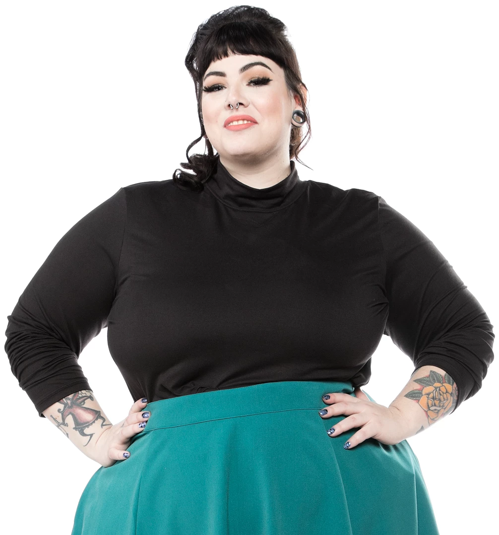 The Mock Neck Top in Black from Retrolicious is the ultimate cool weather separate! This super soft and stretchy top features a modest mock neckline, long sleeves, and is a pullover style with no zippers or buttons. It looks great underneath a sleeveless dress or pair with a swing skirt or your favorite jeans. The options are endless!