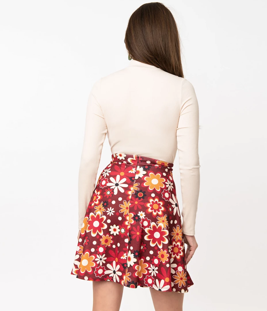 Put some power in those flowers with this fabulous Floral Trend Setter Flare Skirt from Smak Parlour! This is an eye catching mod piece in a brick red with a mustard yellow, red, ivory, and black floral print. Crafted in a lovely knit blend, the banded waist is embellished with a sweet faux button tab and cinched with a back zipper while piping along the waist and pockets adds an extra something special.