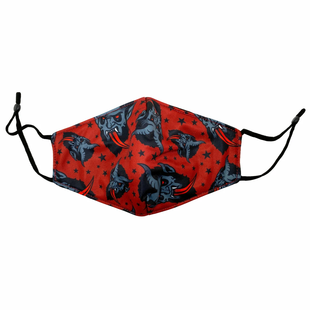 We love Krampus around here, so we designed this creepy Krampus patterned with stars and dots. Each mask is lined with 100% cotton knit lining, and has a pocket for a filter and adjustable ear straps. One filter is included with each mask.ย