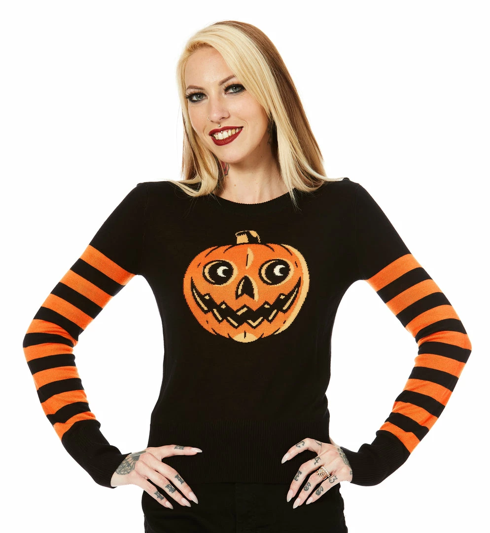 We can’t get enough of this classic little jack o lantern! The new Pumpkin Stripe Sweater is made from the softest viscose yarn, and features a classic collegiate style striped sleeve. It’s ultra stretchy and cozy, and pairs perfectly with any bottoms that you like!