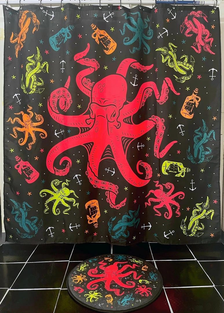 You need to get your tentacles on this Under The Sea Bath Mat! This plush, round bath mat features soft brushed flannel material and a non-skid back so it’s sure to stay in place!
