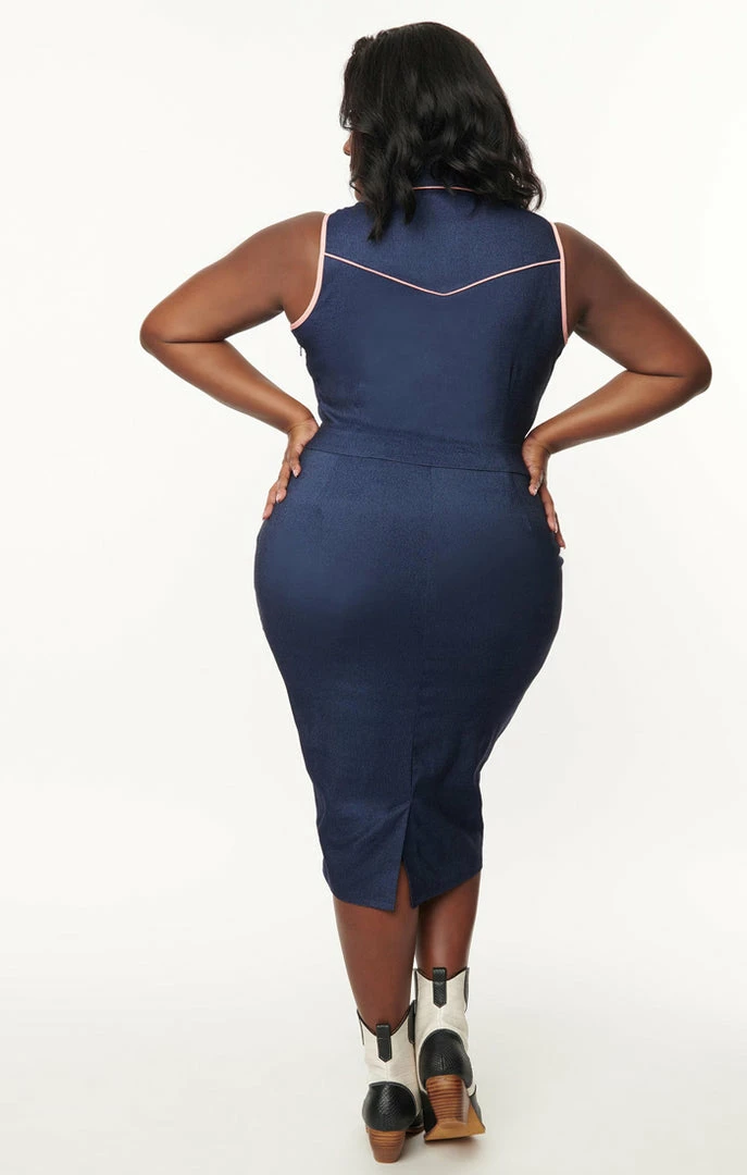 SKU: unique-vintage-7381986607263 Categories: Apparel, Dresses, Shop Sour+Plus, What's New Tags: Alternative, Cowgirl, Denim, Pencil, Pink, Plus size, Rodeo, Western